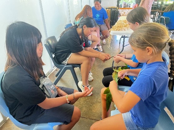 四、學生與夏威夷學生交流傳統植物編織技術,並製成紀念品有祈福的寓意。