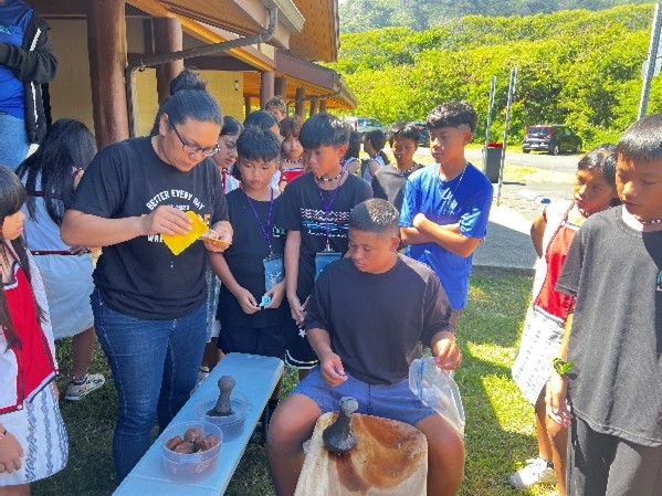 二、期間與Mālama Honua Public Charter School 進行教學活動教學。同為南島語系原住民學校,進行造船及航海課程的交流。
