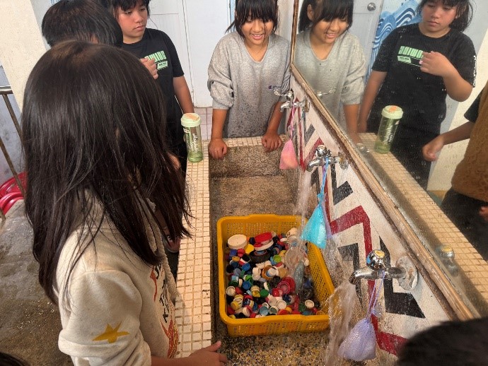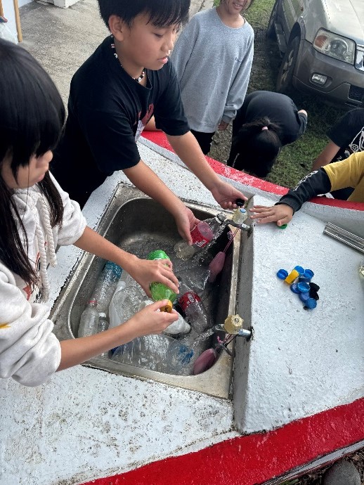 二、一起撿回來的寶特瓶們進行初步的清洗及整理分類。