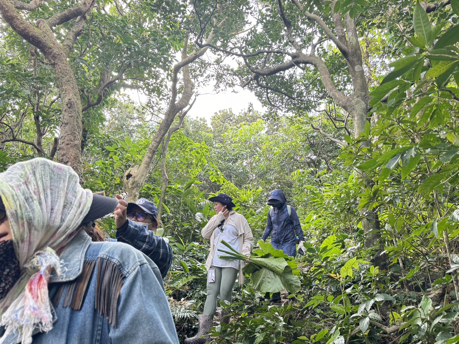 二、外聘當地生態解說員沿途介紹蘭嶼原生種動植物,了解棲地需要保育的重要性。