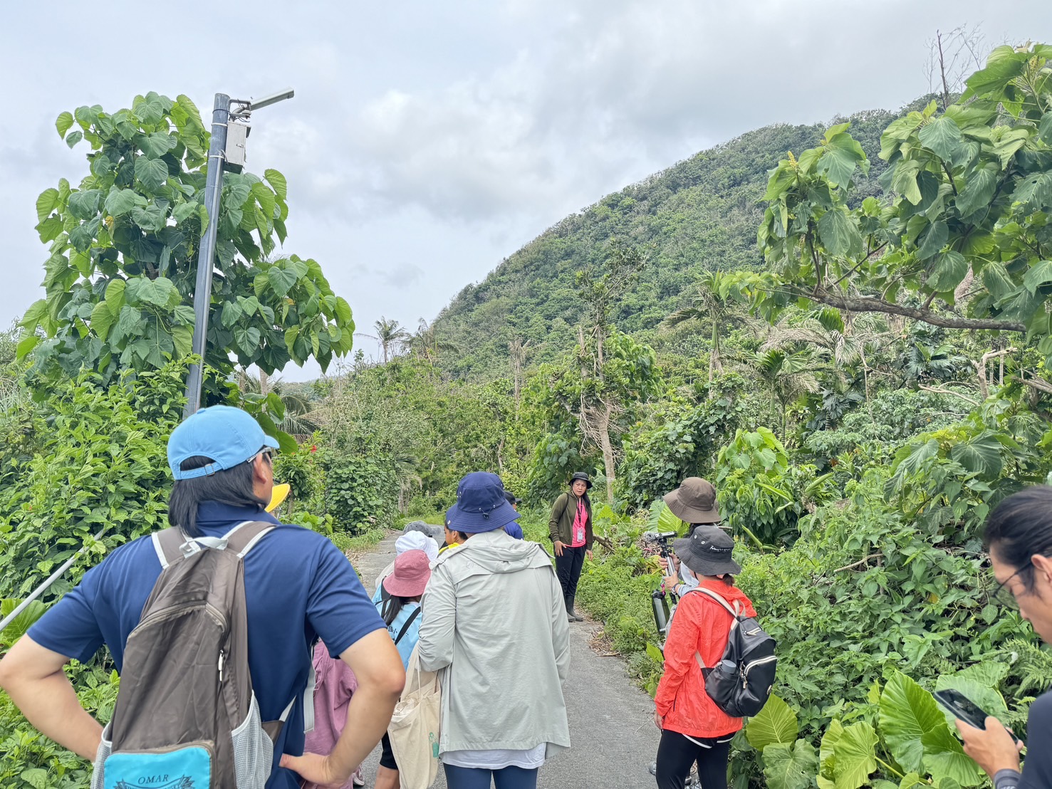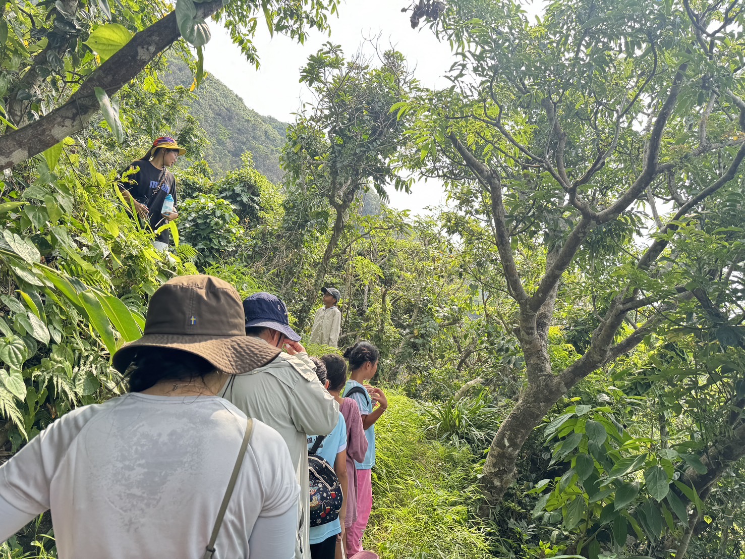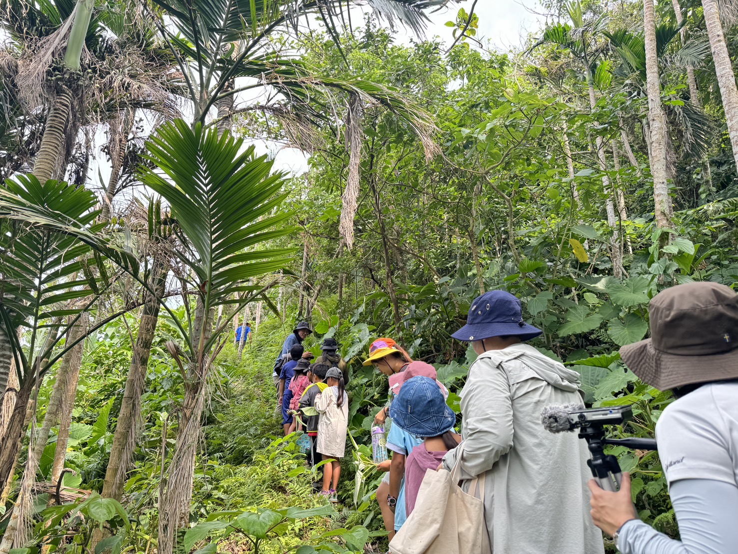 二、生態講師沿途講解蘭嶼原生月桃葉及其他原生物種的動植物,同時也讓學生知道對這條路是長者經常上山照護所種植的作物果樹並經之路。