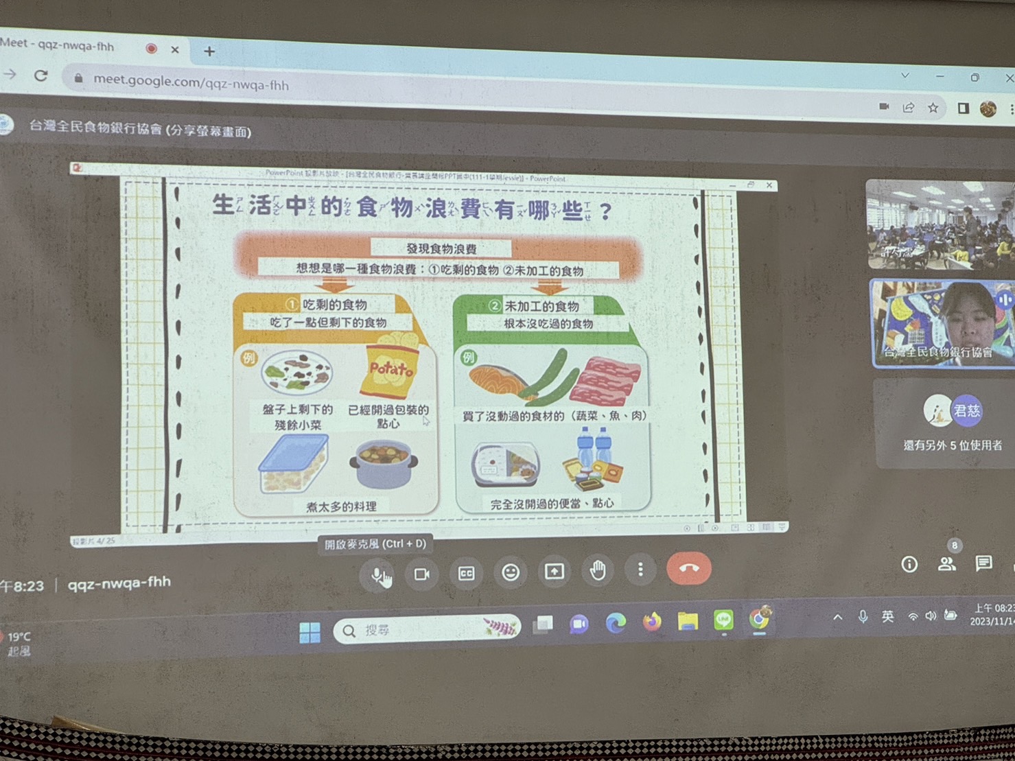 一、台灣全民食物銀行到校進行減少剩食宣導。