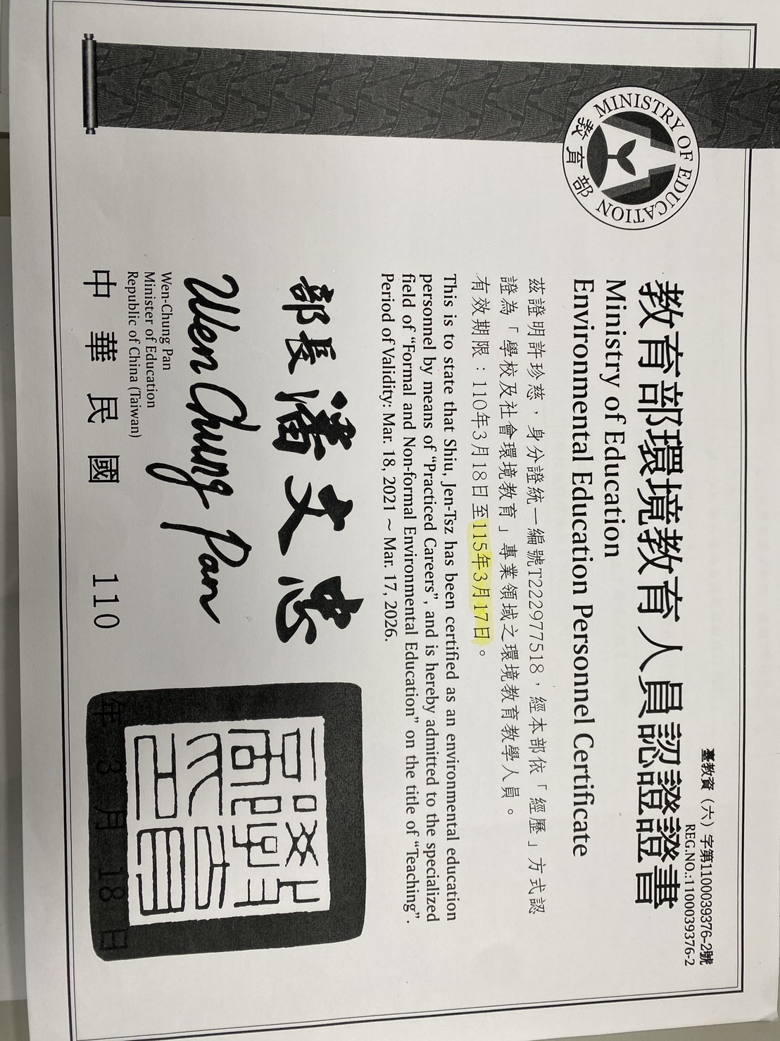 1-1取得學校環境教育人員認證證書
