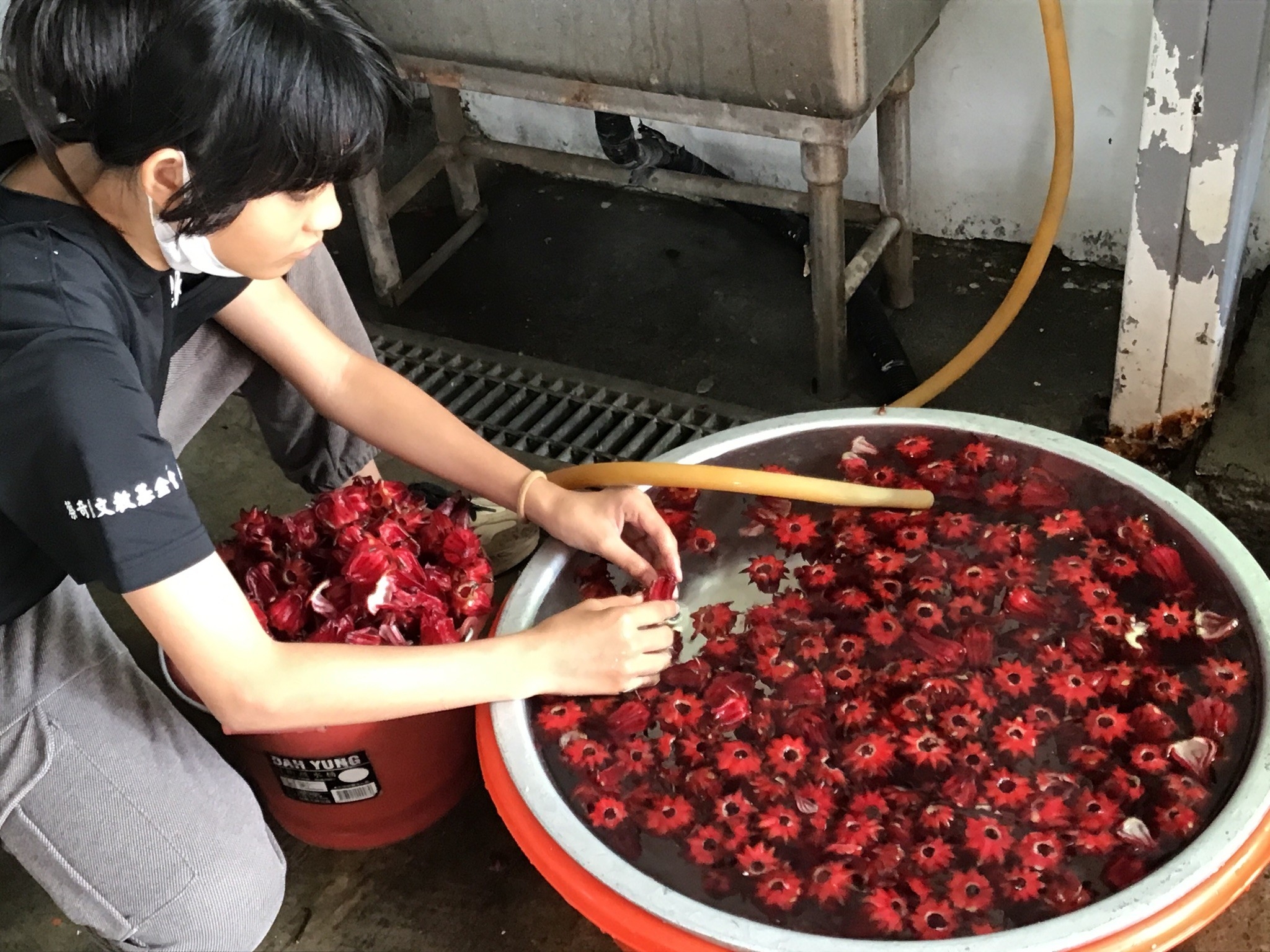 二、共同清洗、整理後,自製洛神花蜜餞