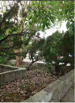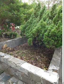 將校園中的落葉統一集中於花圃內,將落葉鋪平以達到堆肥效果,利用此方式減少落葉傾倒回收之難題,另一方面阻擋雜草生長,達到自然永續發展之功效。