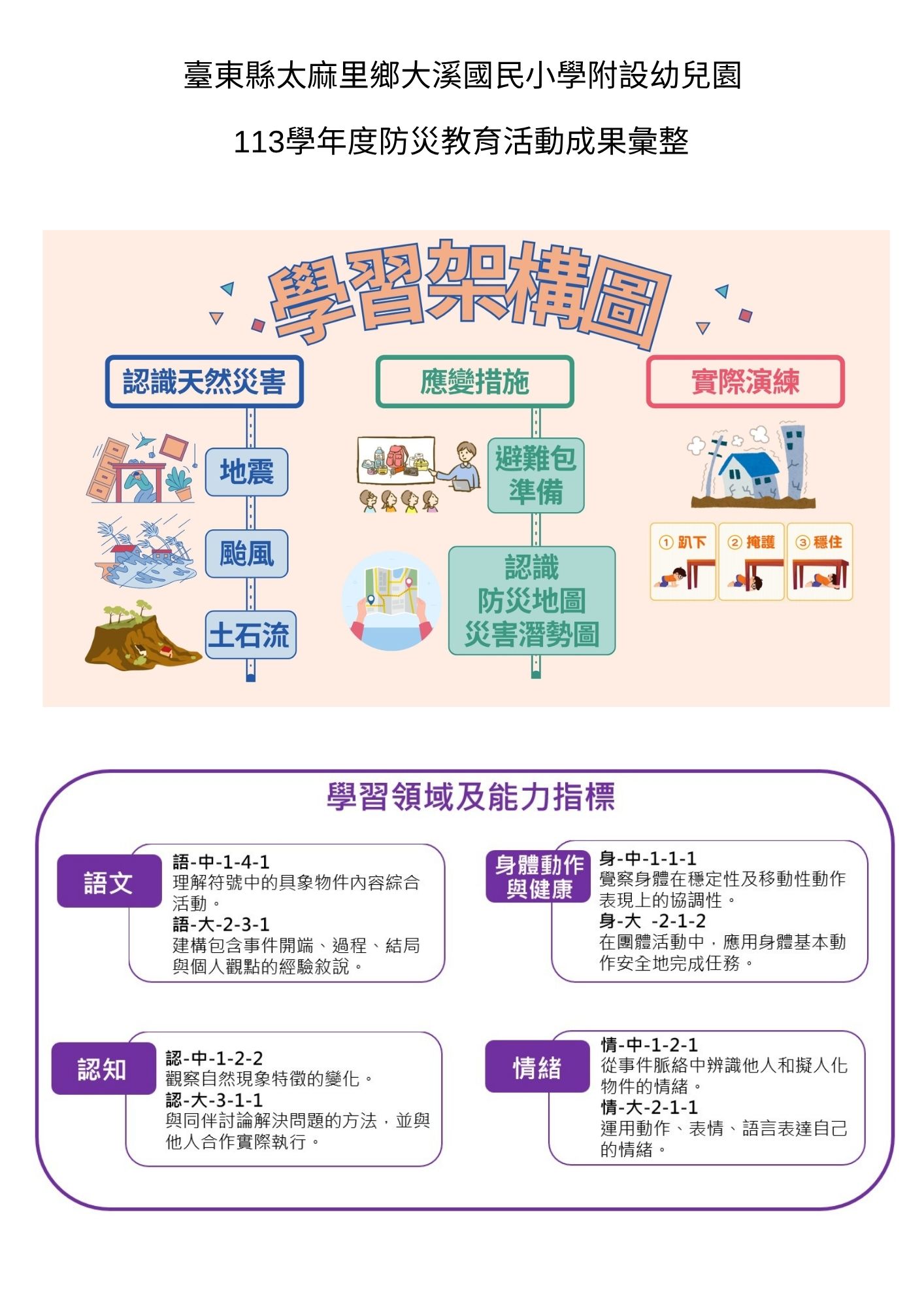 太麻里鄉大溪國小推動防災教育相關成果資料列表