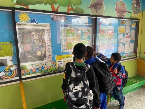 三、說明:學校穿堂公告欄宣導防災地圖