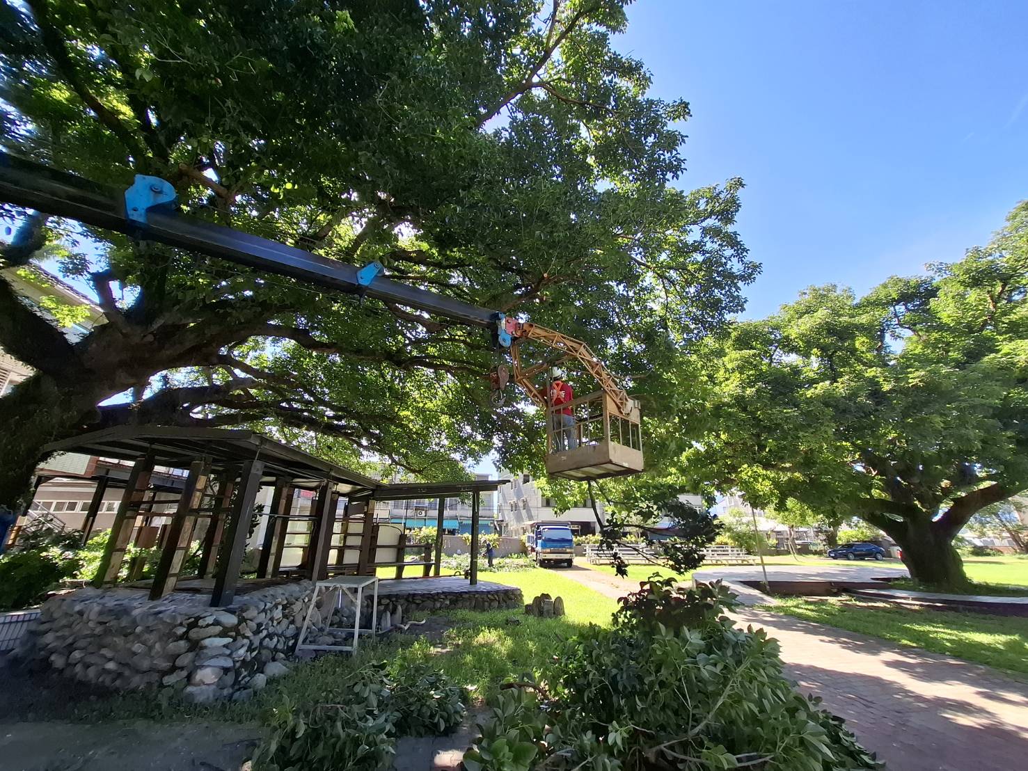 114年4-5月份防汛期間完成颱洪災害整備檢核以及防汛安全檢查表。 防汛期間,清理校園水溝,並鋪設紗網於水溝蓋上,防止物品掉落於水溝內造成阻塞;修剪樹枝,降低颱風來臨時的災害發生率,保障人員與財物安全,也能避免災後清理與復原的壓力,讓校園與社區更具韌性。