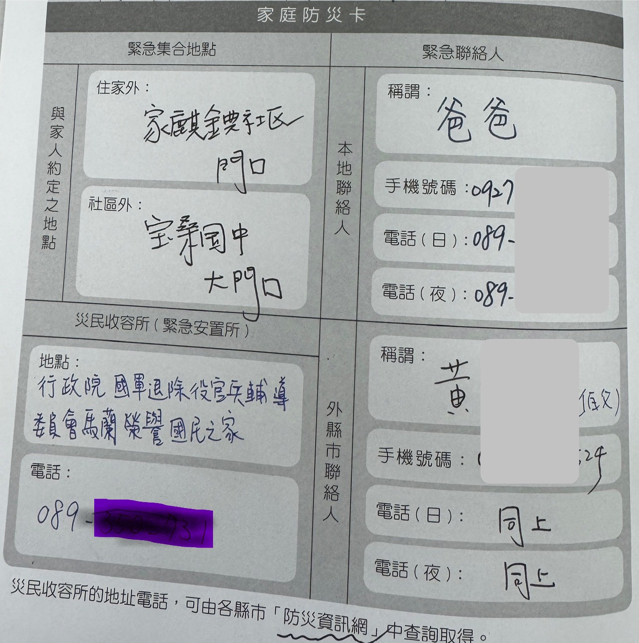 3-2宣導「家庭防災卡」