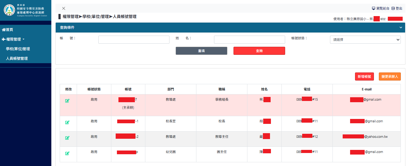 1.建置緊急聯絡人務必包含校長、業務主管、業務承辦人等3人。(附設幼兒園者需增含園主任)