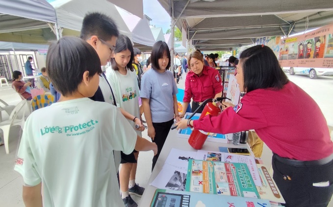 a.參與現場防災園遊會-認識滅火器的種類使用方式。