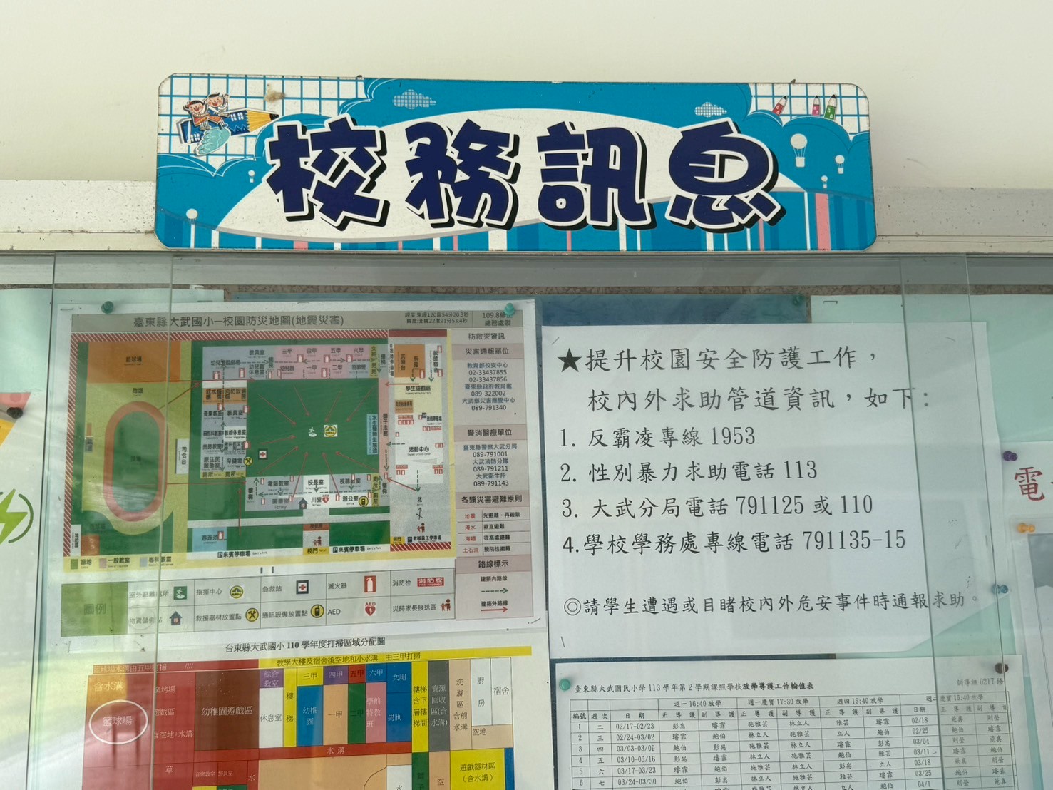 校園疏散避難地圖公告張貼於校園及宣導。