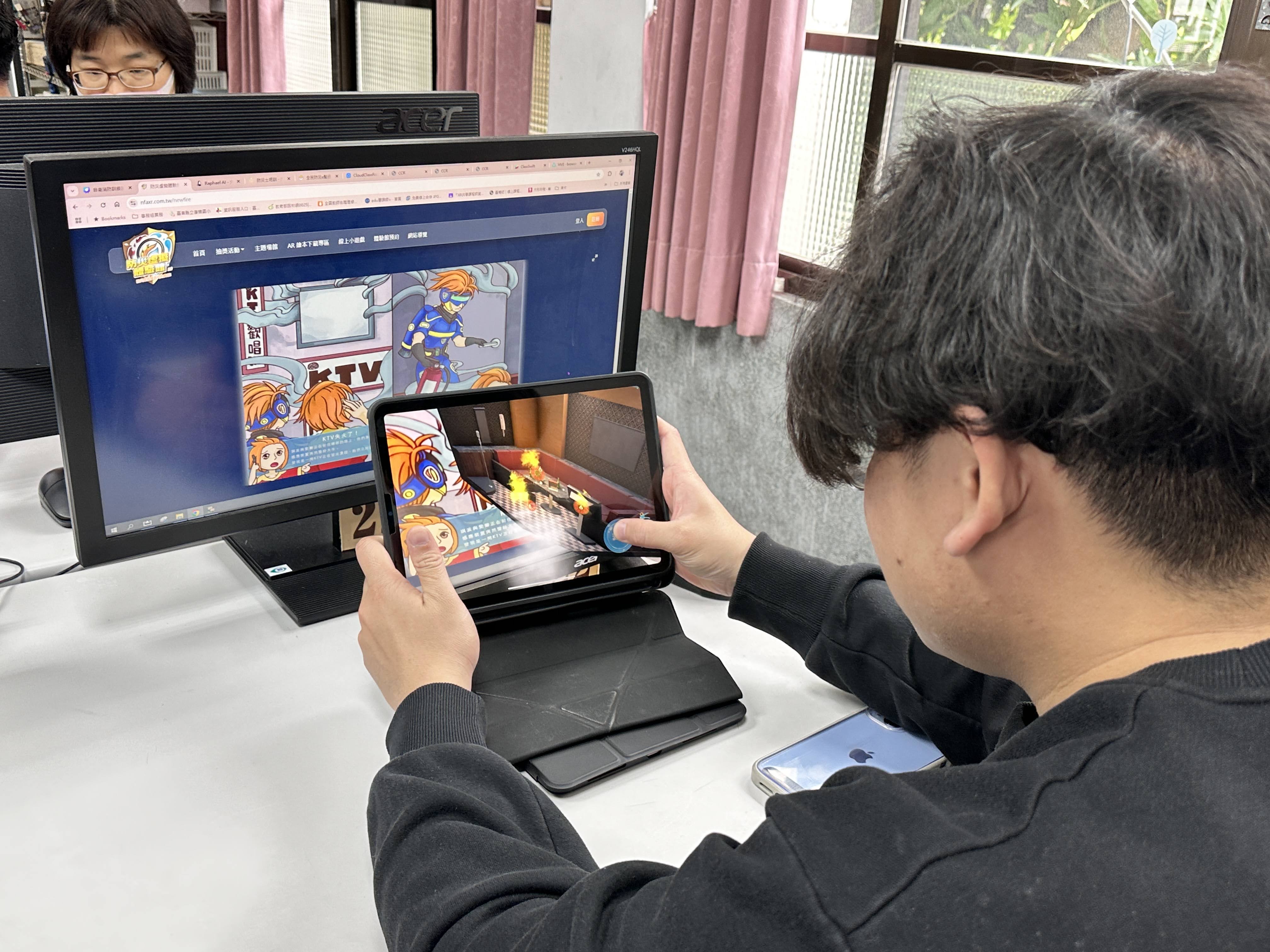 • 科技應用:為了提升學習興趣與效果,我們結合5G新科技,運用VR虛擬實境 、AR擴增實境 及平板進行防災教育訓練與繪本體驗。